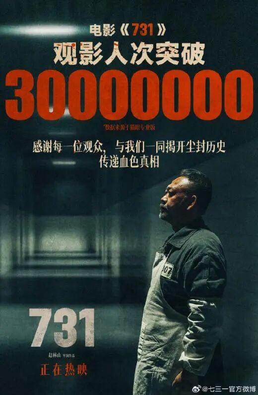 在票房淡季的九月,《731》观影人数突破3000万次,有如此成绩,实属不易。