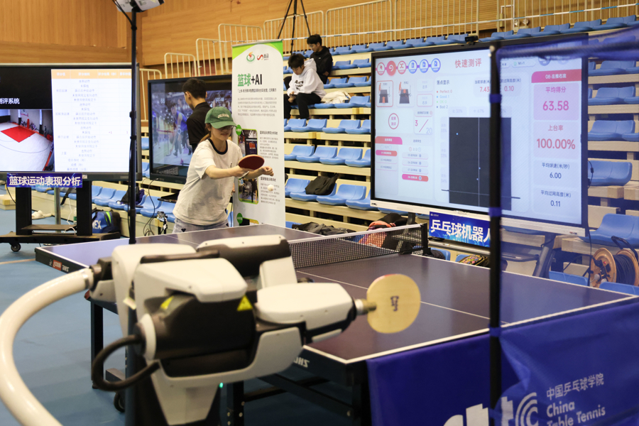 除上体体育大模型外,具身智能机器人、乒乓球机器人、武术人工智能化评教系统、神经增能、篮球一体机、青少年体育智能评测软硬一体机、激光雷达羽毛球训练分析系统等人工智能赋能体育事业的最新科技产品在发布会现场进行了集中展示。