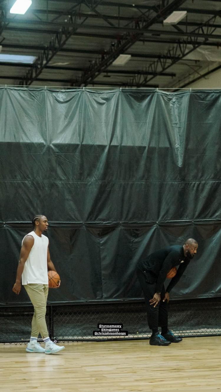 该摄影师晒出了湖人前锋詹姆斯、以及76人后马克西一起训练的片段。
